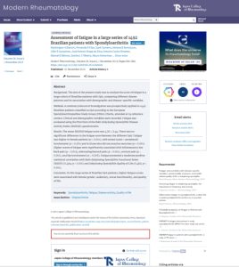Assessment of fatigue in a large series of 1492 Brazilian patients with Spondyloarthritis